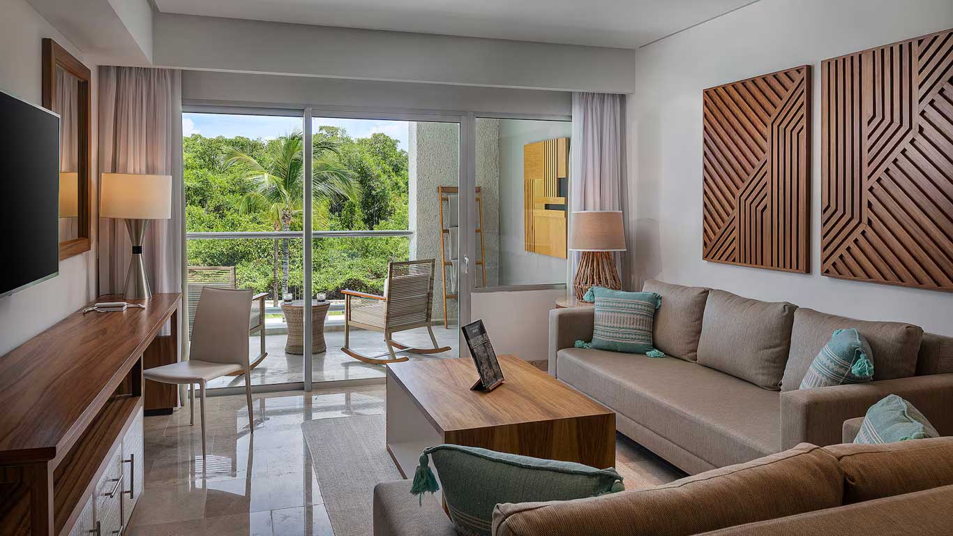 Discover the epitome of elegance in The Reserve Junior Suite Nature View at Paradisus La Perla. Book a suite with an aura of timeless elegance and endless amenities. A bedroom with a sofa and a bathroom with a rain shower. All this plus a private terrace with a whirlpool bathtub that you will love.